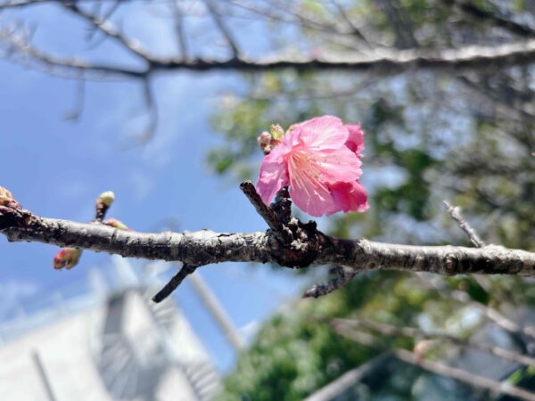 ぽかぽか陽気に誘われて🌸 クリーン散歩🐾 X Facebook LINE コピー 2026.02.20 北谷町砂辺の駐車場にて桜が咲いていました! 今年のこの時期はいい天気が続いており、お花が写真映えするのが嬉しいです(^^)v 桜が咲いている間にお団子を食べてお花見を楽しみたいと思います(^^) 暖かい天気ですが、自販機の看板猫にとってはまだまだ寒いようですね🐈